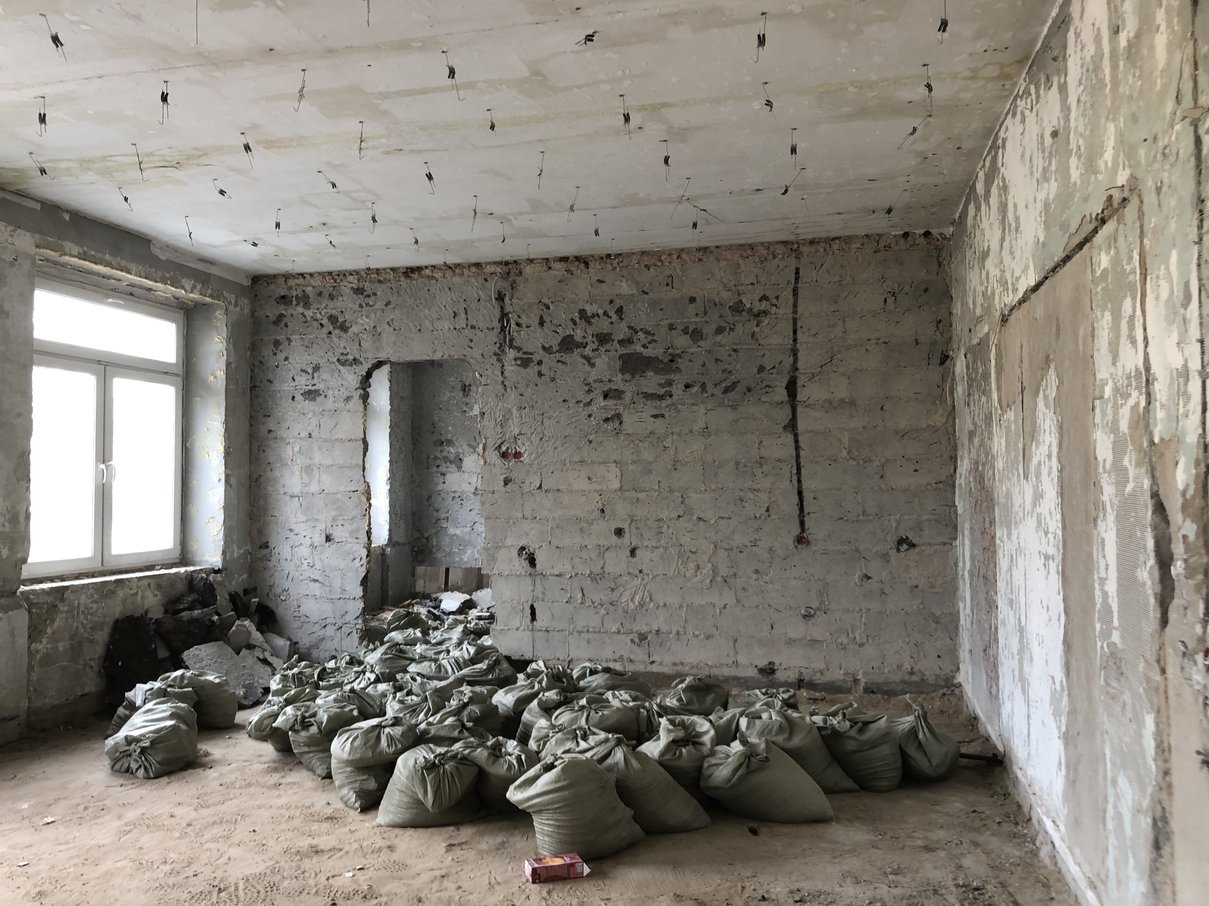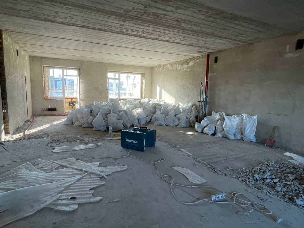 После демонтажа остаётся большой объём строительного мусора. Мы сразу решаем эту задачу:- вынос мусора